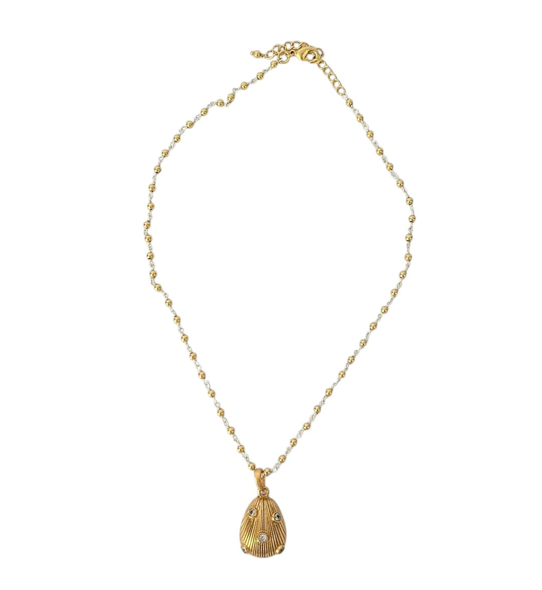 La cadena artesanal, de plata con bolitas bañada en oro, equilibra la historia y la modernidad con una delicadeza que enamora.