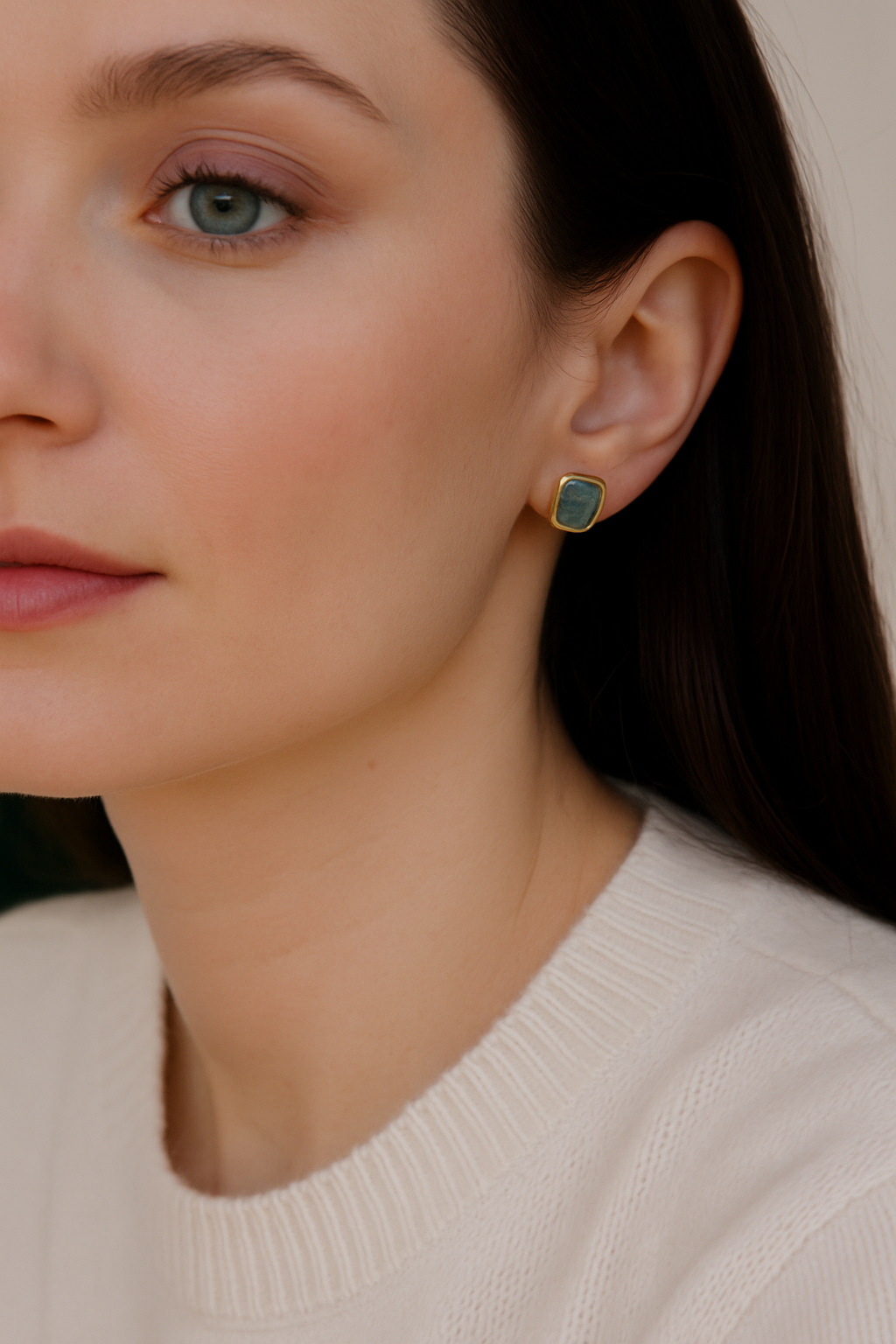 Diseño rectangular, original y con carácter. La piedra labradorita, en su forma más natural, aporta un brillo único e impredecible.